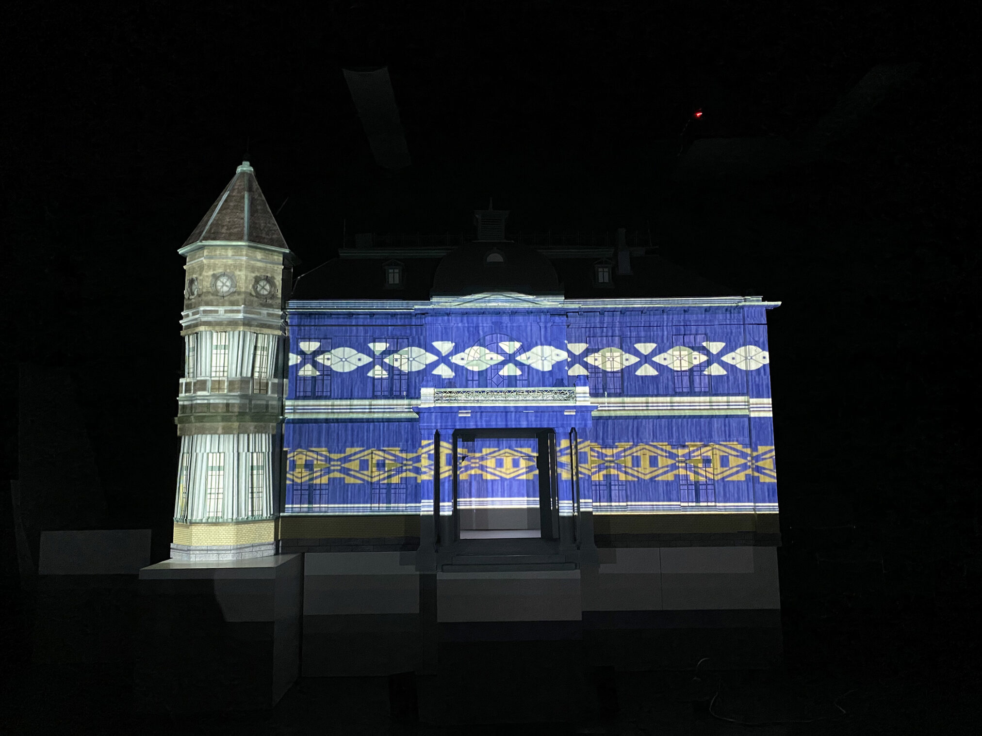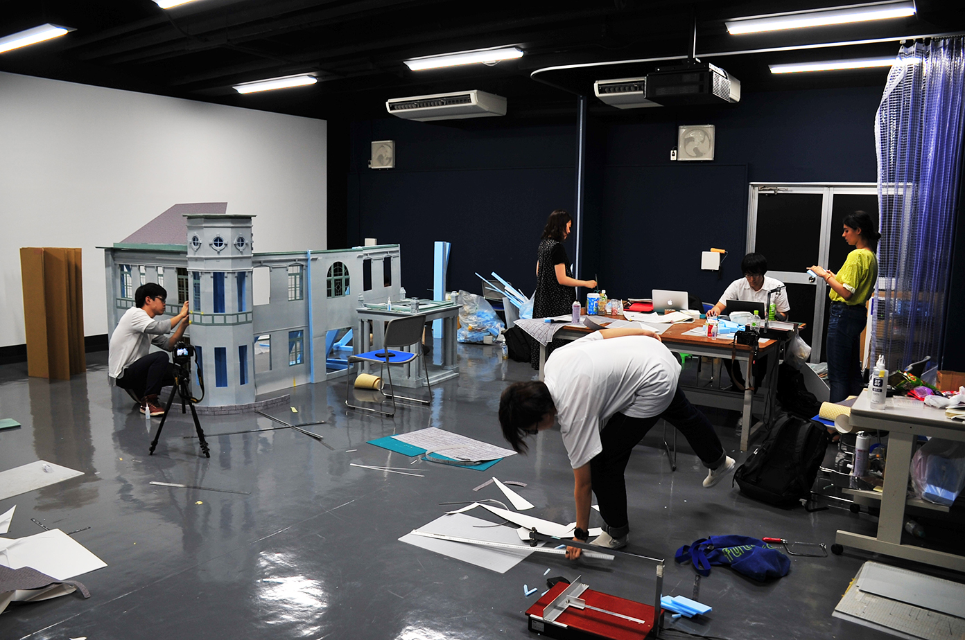 学内で投影実験を行うため、環境設計コースの田上研究室のご協力のうえ、貴賓館の模型を製作しました。